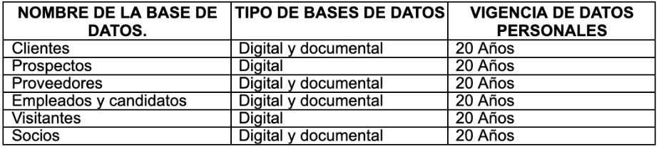 La vigencia de estas bases de datos dependerá de que se mantengan las finalidades para las cuales los datos que en ellas se encuentran fueron recopilados por STUTTGART S.A.S., mientras que los titulares de la información en ellas registrada mantengan una relación u obligación legal o contractual con STUTTGART S.A.S., así como durante el tiempo en que STUTTGART S.A.S. requiera mantener la información para dar cumplimiento a sus obligaciones legales en diferentes materias.